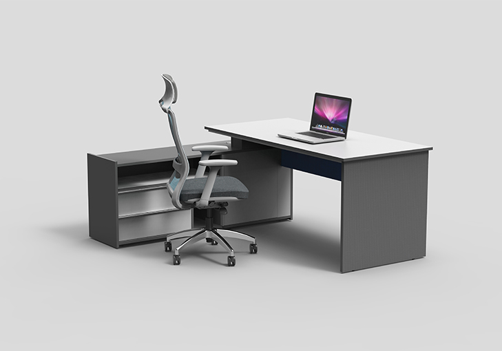 贴面:板材采用“铁灰色”、“森工白色”饰面纸,耐磨,不易变色。主台面为森工白色,采用灰色封边条;其余板件为铁灰色或白色板件有视觉感;